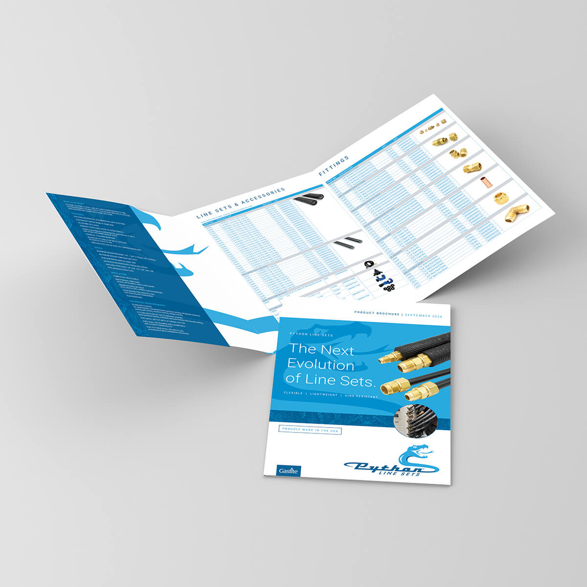 We developed a cohesive brand identity for Python Line Sets, a division of Gastite, including this custom product box, along with brochures, sell sheets, and ads that align seamlessly. This unified approach enhances messaging, boosts brand recognition by 80%, and drives sales across channels.